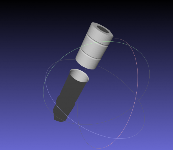 - You can check the files in the MeshLab program. The analog has a light area inside, and the scanbody has a light area outside.