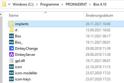 - Place the extracted folder in C:\Program Files\PROMADENT\Biss [current version]\implants